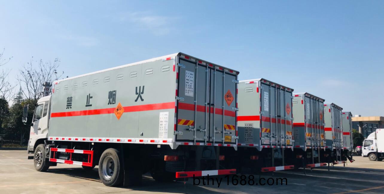 陝西危險品運(yun)輸公(gong)司一次性(xing)在我司購買10檯10噸東風天錦炸藥運輸車,東風天錦10噸炸藥運輸車運輸獨立(li)容器(缾)包(bao)裝的貨物;EX/Ⅲ型車(che)輛;危險貨物類項號:1.1 D,1.1B,1.1G ,1.1C,1.3C,1.4G